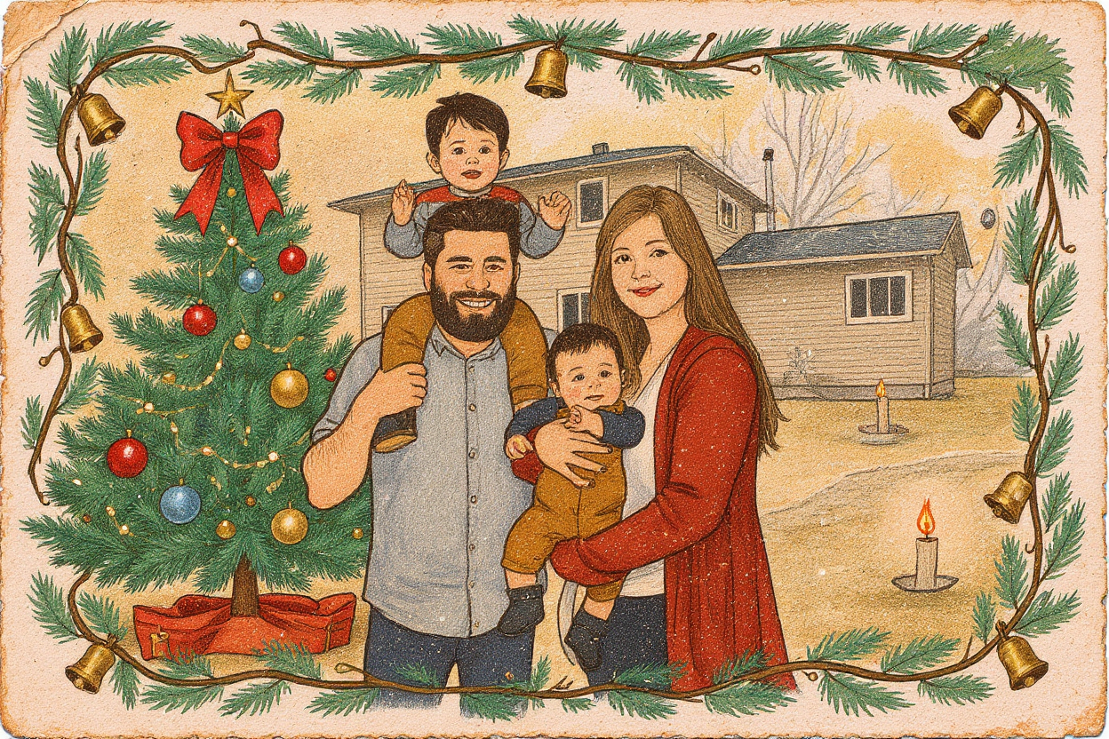 Vintage karácsonyi képeslap stílusú személyes portré